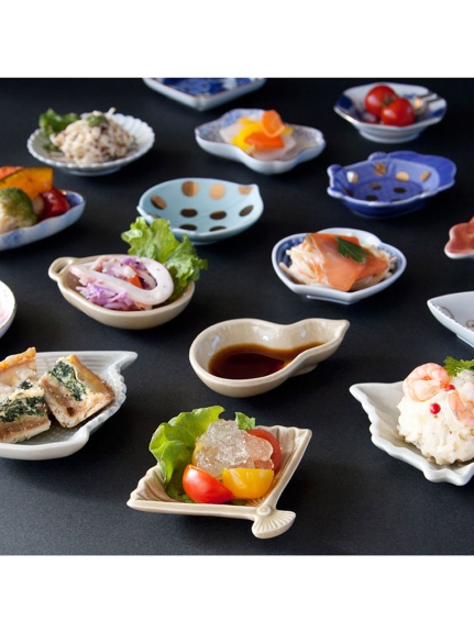 大正時代以前のハンドメイドで作られた、少し肉厚で温かみのある不均等な形状で吉祥モチーフを甦らせました。原型から細部に至るまで精巧に作られた新しい豆皿は、現在のマシーン製の製品とは一味違う個性を持ちながらも、ヴィンテージ感漂う落ち着いた色味でどんなお料理、テーブルウェアとも相性抜群です。