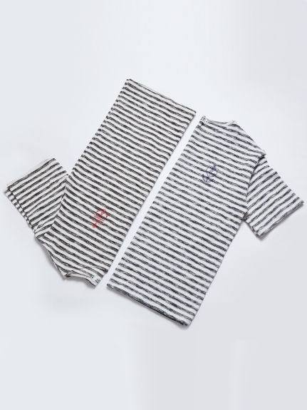 【UNISEX】NOMANTIC ANCHOR LOGO STRIPE 1/2 BOAT NECK T-SHIRTS
