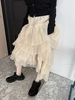 大胆なフリルデザインには、左側のみ深いスリットを入れ抜け感をプラス。