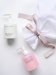 ハンドソープとハンドボディミルクを1点ずつ、リボンの付いたギフト巾着に入れ、お届けするスペシャルなセルフケアギフトセット。