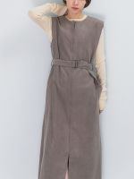 【フロントジップがアクセントをプラスするスエードワンピース】