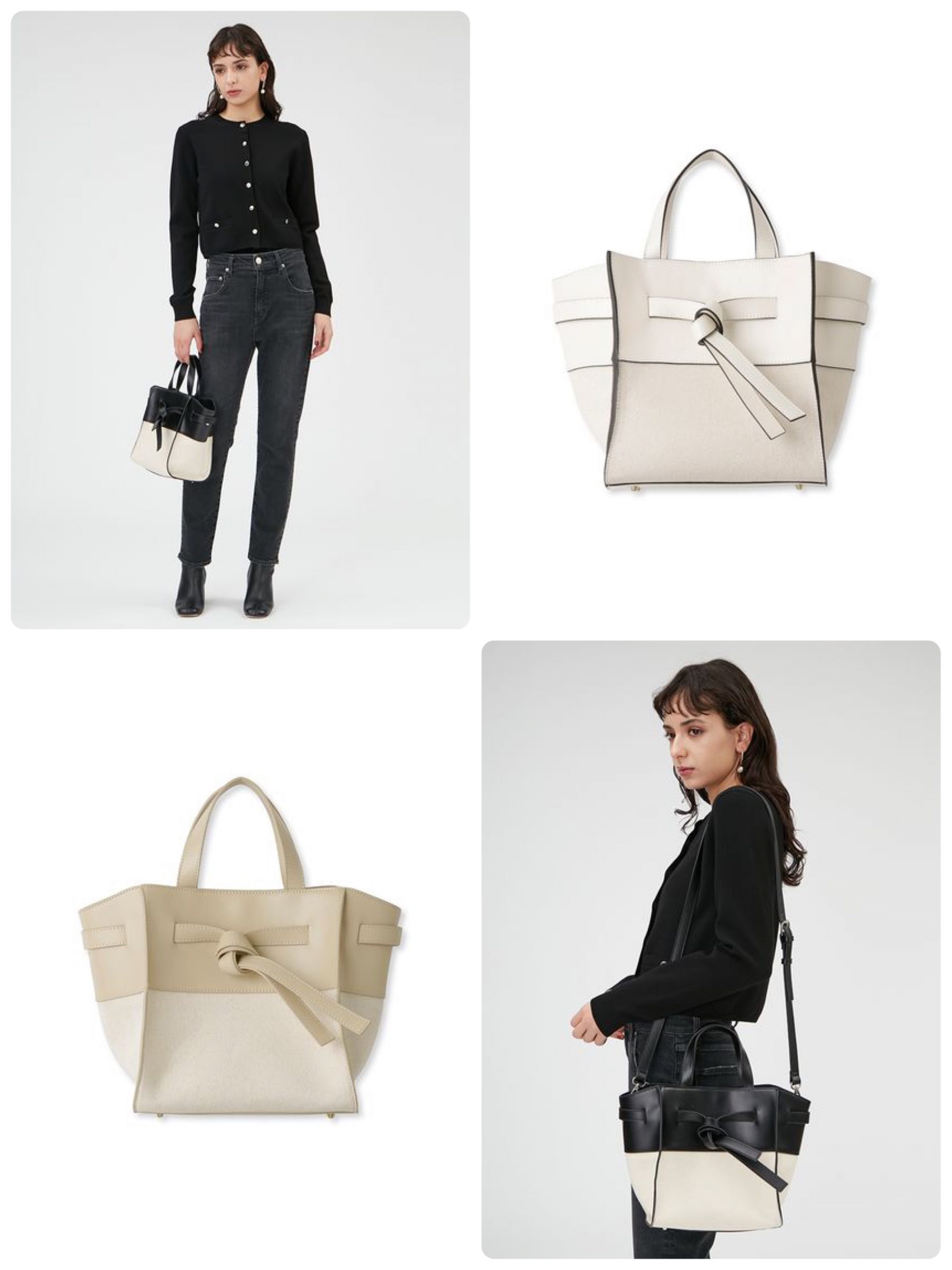 FRAY I.Dらしいフェミニンなリボンデザインの、ショルダー付きトートバッグ。キャンバス地と合皮素材がバイカラーになった丁寧な作り。荷物多めな人でも安心のサイズ。
