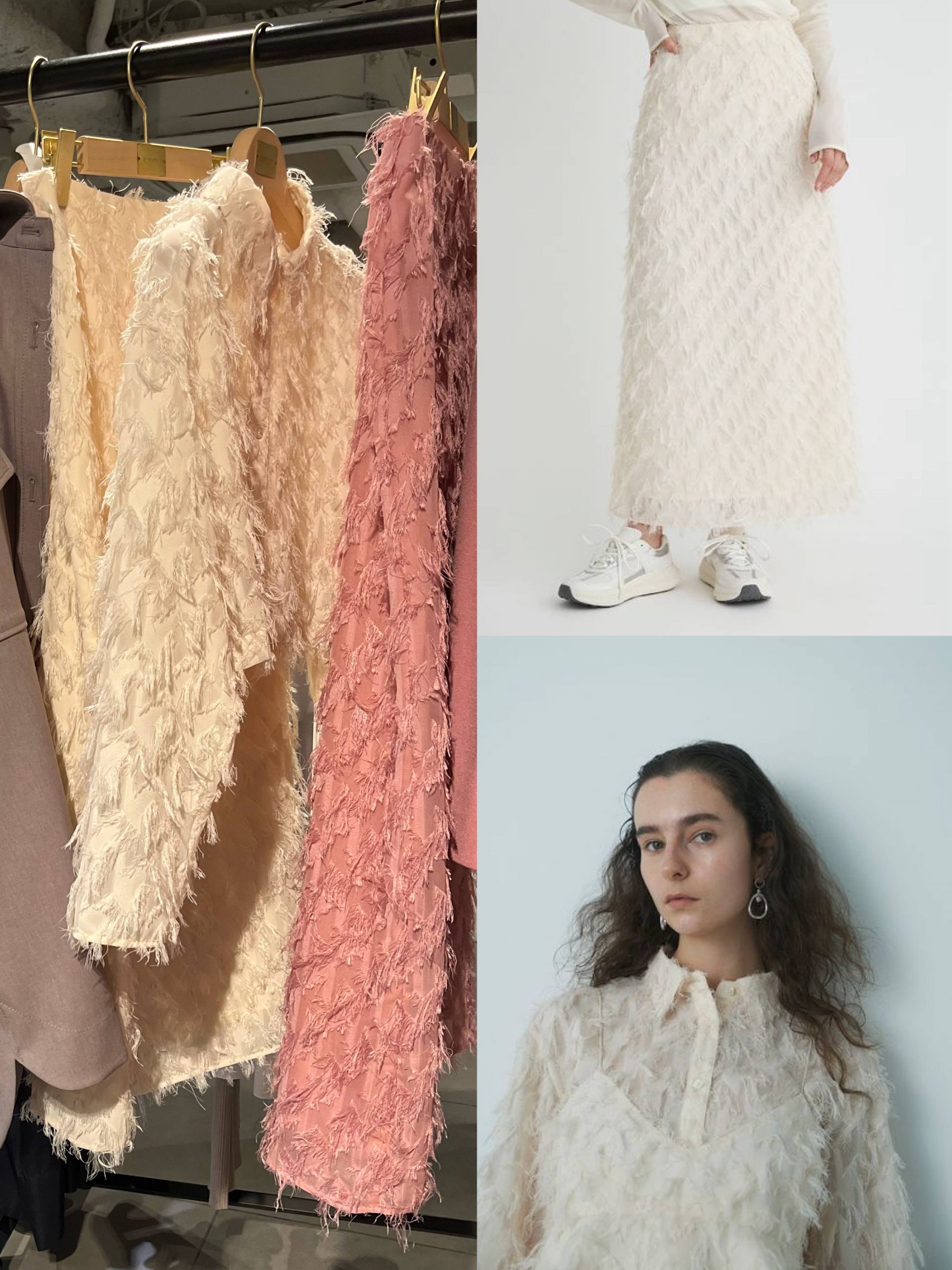 手の込んだ、コーデがぱっと華やぐフリンジジャガード。デザインがミニマムで今っぽいのが、emmiらしいポイント。 インパクト大なので、単品使いもお勧めです。