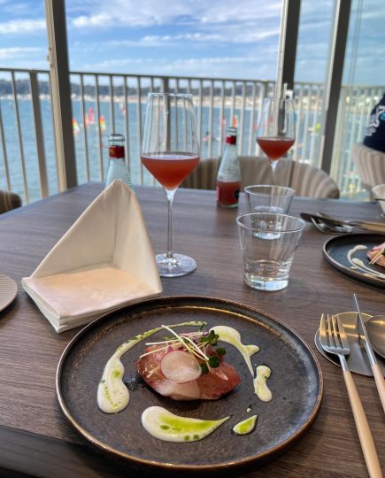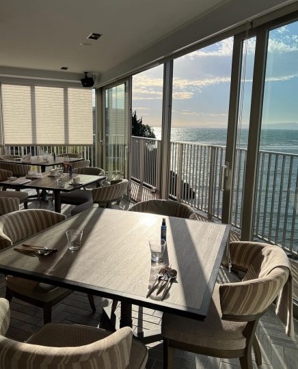 逗子の海がすぐそばにあり、波の音や風を感じながらお食事が楽しめるフレンチレストラン。