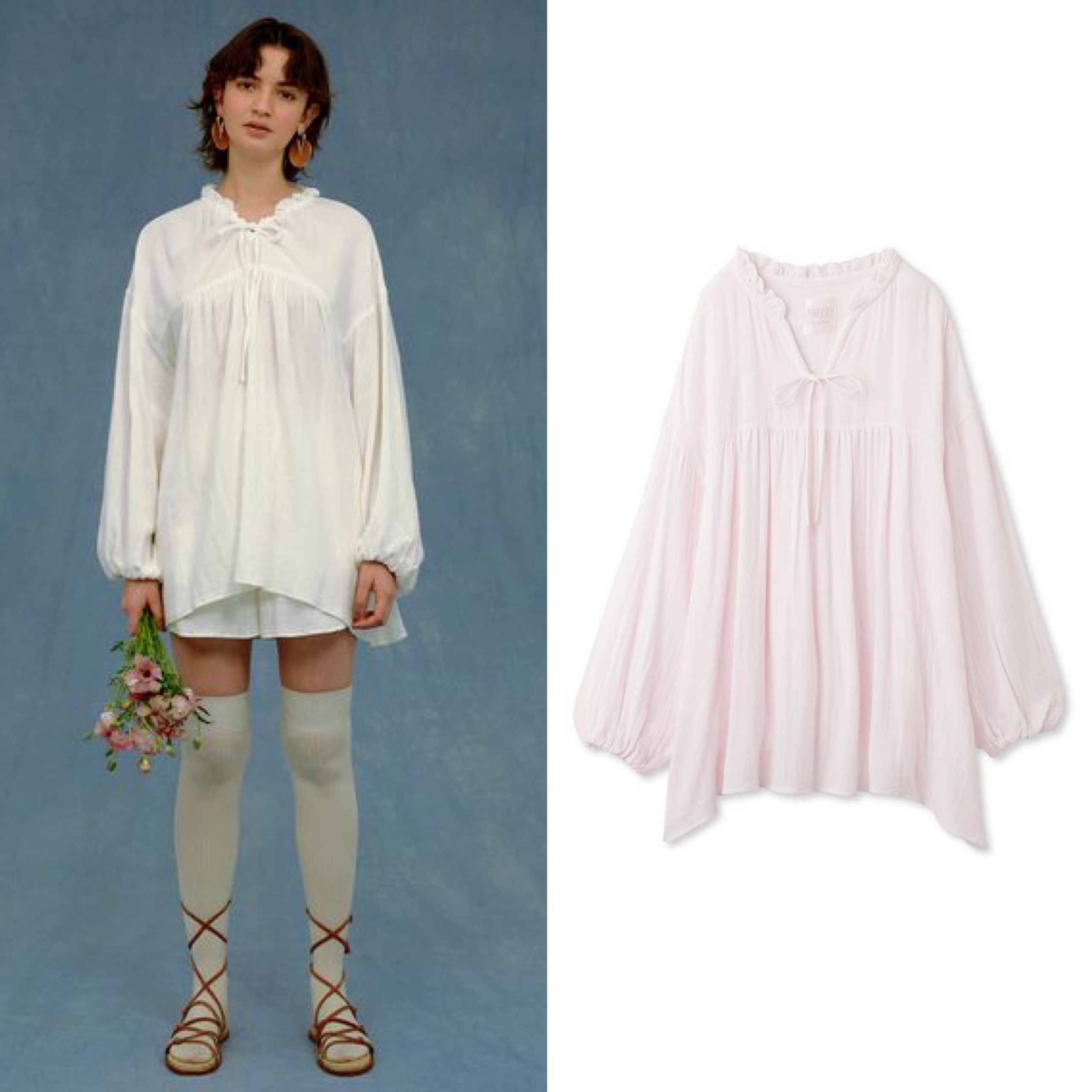 こちらもジェラートピケのガーゼシリーズのトップス。着こなしによってはデイリーにも気回せそう。ふっくらとした袖と裾に向かって広がるチュニック丈がポイント。【SAKURA】ガーゼプルオーバー/ジェラートピケ