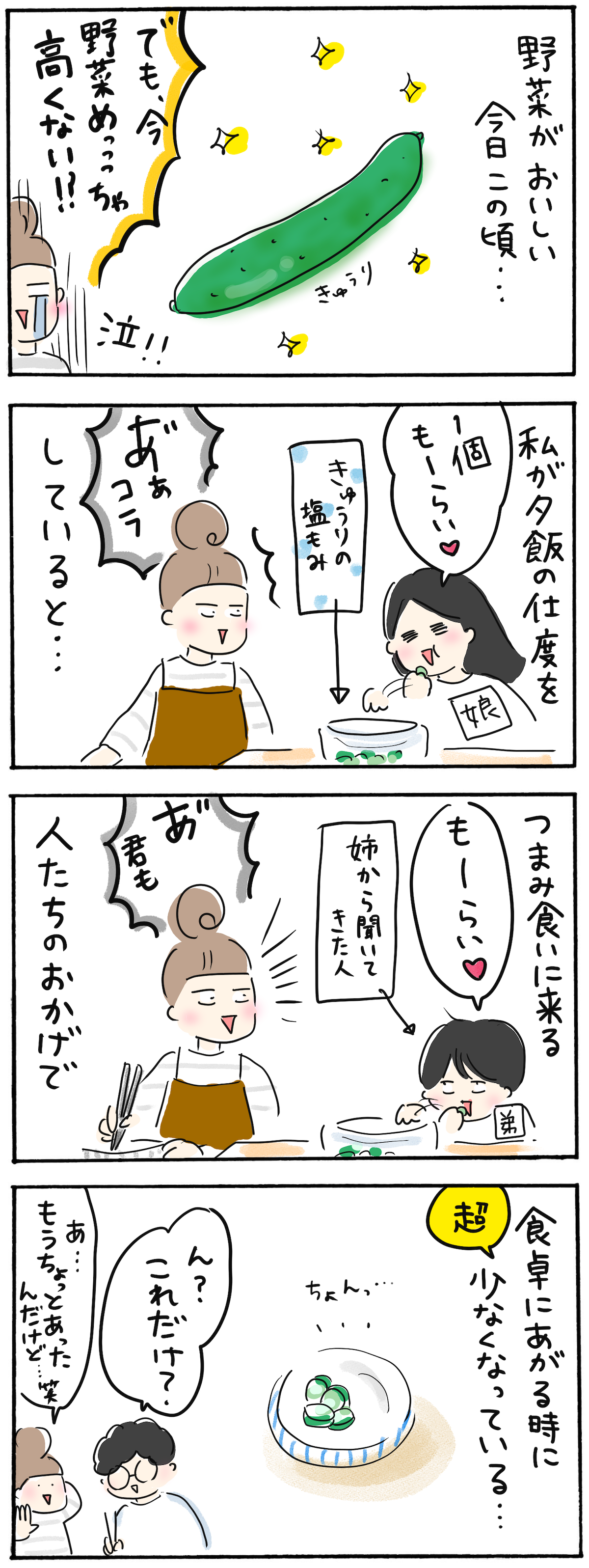 あの味が染み込む前のきゅうりを母の手から口に入れてもらって、その味が良かったんだよねー^^