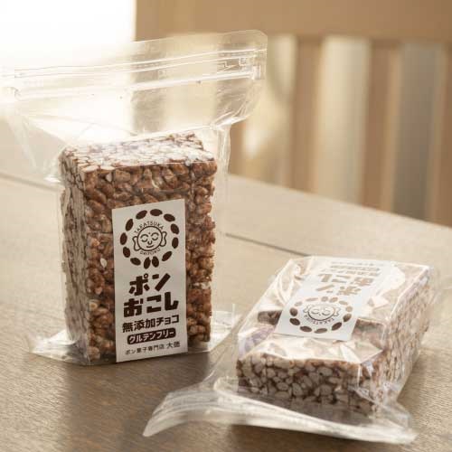 懐かしいポン菓子×チョコレートのグルテンフリースナック。シンプルな原材料でアレルギー28品目に対応しているので、老若男女に贈りやすい。