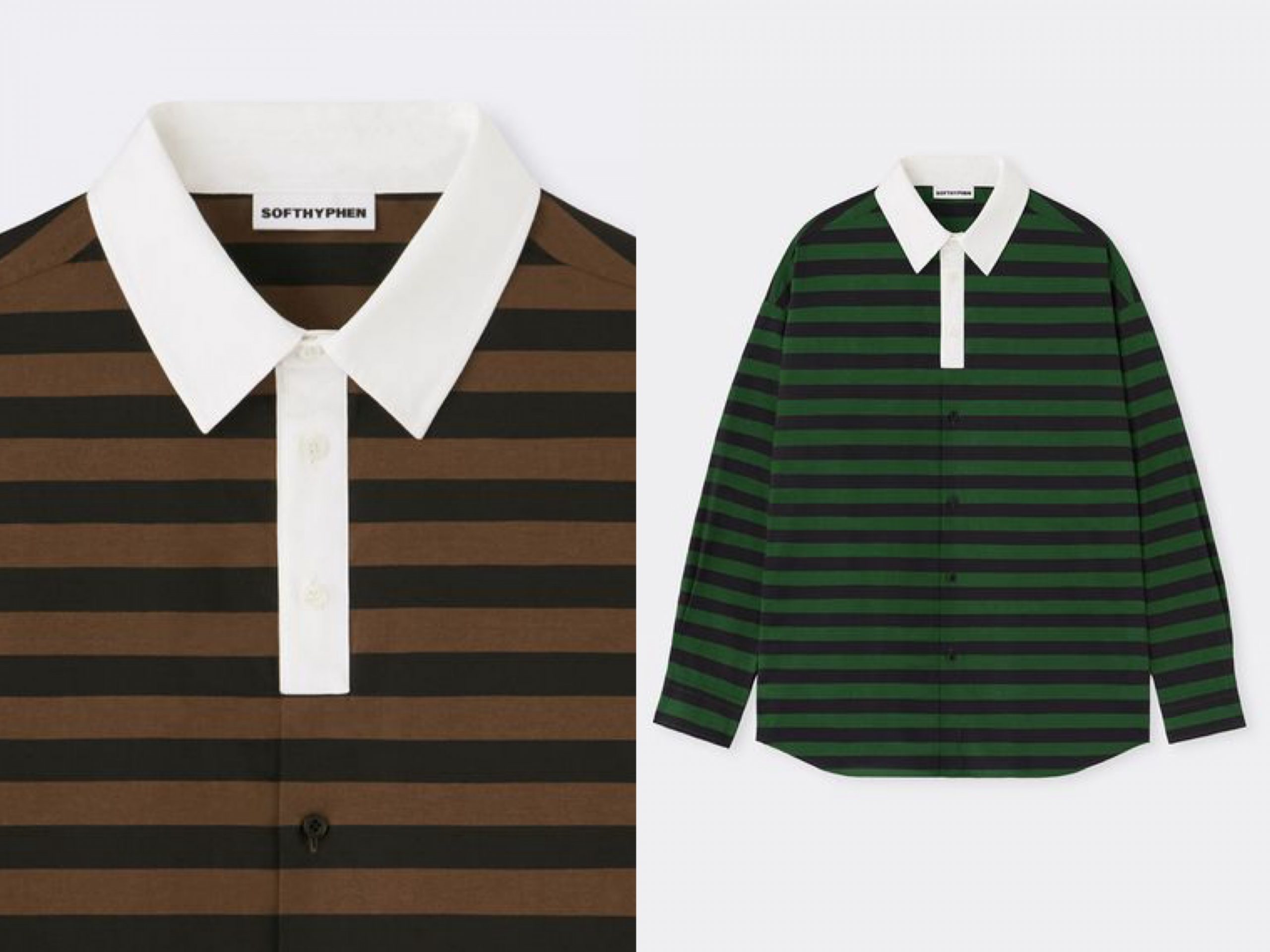 大きなサイズをダボッと着るのが可愛い。 RUGBY COLLAR BORDER STRIPE SHIRT /ソフトハイフン