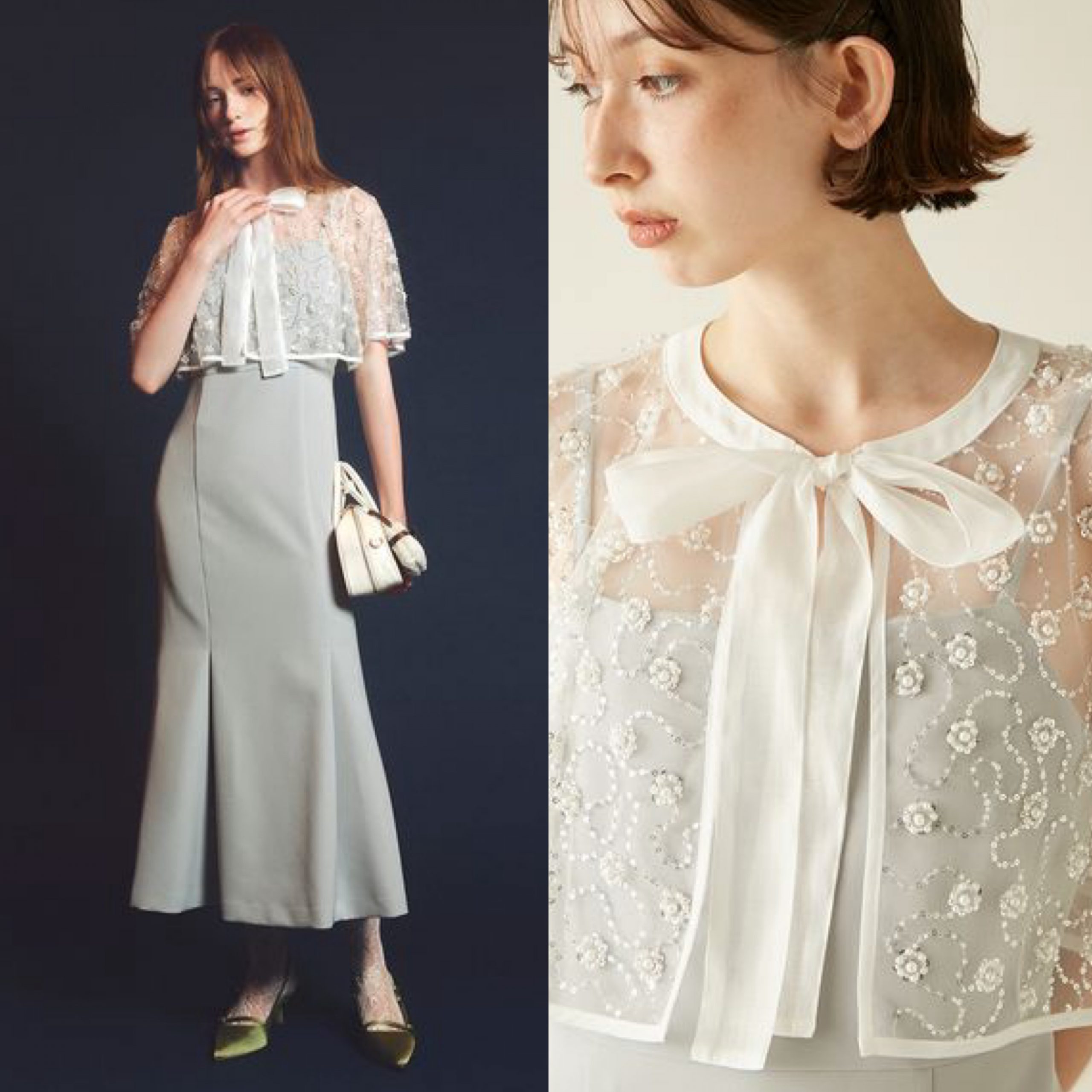 チュールやスパンコールが華やかに散りばめられたボレロがセットになった、マーメイドシルエットのオケージョンドレス。ボレロは前後2WAY可能。 [L.B CANDY STOCK]ビジューボレロドレス/LILY BROWN
