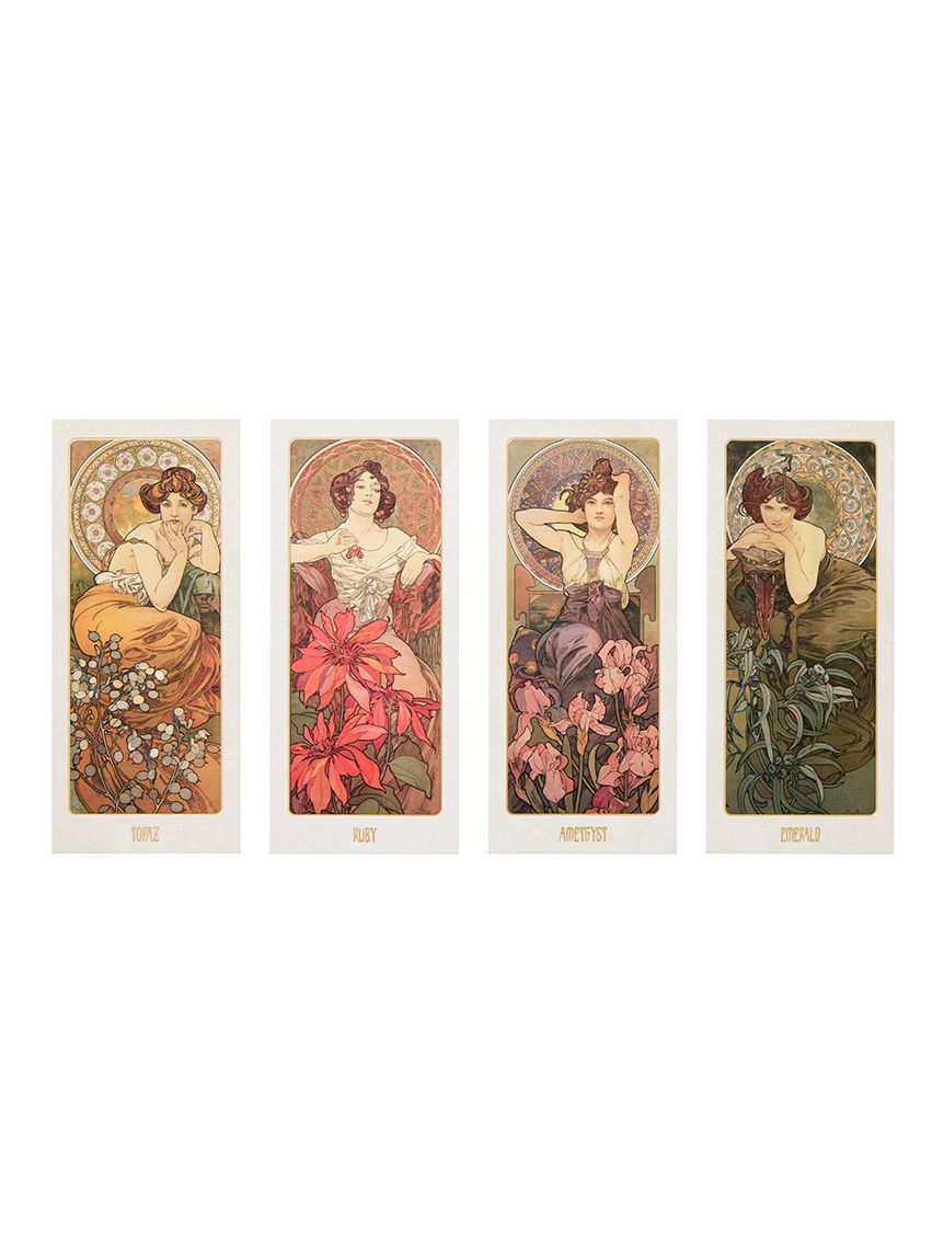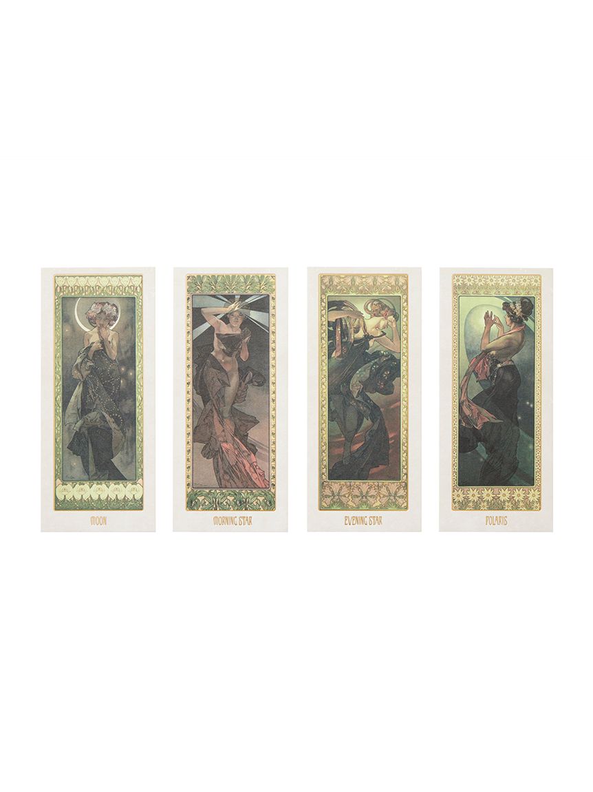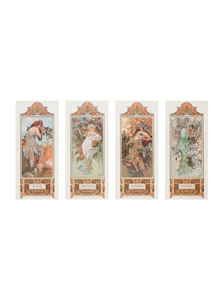ミュシャの代表的な四連作のメッセージカード。香りを吹きかけてお手紙に忍ばせたり、お気に入りの本のしおりとしてもお楽しみいただけます。デジタルでは伝わらない感謝やお祝いの気持ちを、ミュシャのアートに乗せて伝えてみてください。